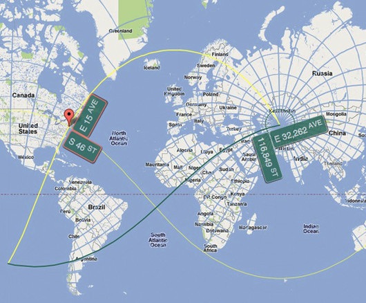 ExtendNY is an interactive map which extends the Manhattan Grid of streets and avenues to every point on Earth.
